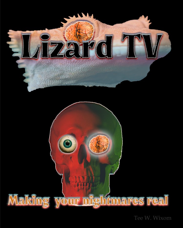 This is my idea for a steaming horror television app. I found an image of a lizard and masked a gradient over it. I copied and pasted the lizard’s eye with bevel and embossing for the lizard’s head and human skull. The human eye made from a eyeball statue. The skull has bevel and emboss on it.
